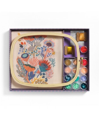 El perlage consiste en coser perlas y lentejuelas a mano con aguja e hilo, trabajando con paciencia y detalle. El kit incluye un tutorial en vídeo que te acompaña desde cómo subir la aguja y sujetar el tambor hasta las técnicas para conseguir un brillante uniforme y un acabado profesional. Es una actividad ideal para practicar la concentración y disfrutar de un rato creativo y relajante.